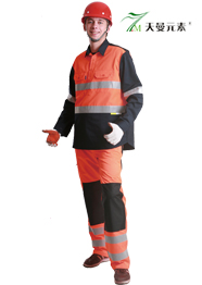褲子:前門刀防火拉鏈,兩個斜插褲兜,兩條5CM反光條環繞褲腿各一周。